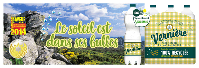 L’eau minérale naturelle Vernière a sa source dans le Parc Régional du Haut-Languedoc, au pied du massif des Cévennes, non loin de la station thermale de Lamalou-les Bains (Hérault), où elle est embouteillée.