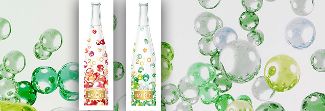 Des « boules » de Noël défient les bulles….sur la robe de vos bouteilles de fin d’année ! Pour les fêtes, Badoit s’est associé aux Beaux Arts de Paris pour réaliser ses bouteilles de fin d’année 2009.
