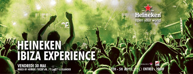 Ce vendredi pas d’internet! Par contre au Mango de 22h à 5h il y a la HEINEKEN IBIZA EXPERIENCE – Mixed by Temae records, « T-Uniiit » & Islander. Cliquez ici pour en savoir plus.