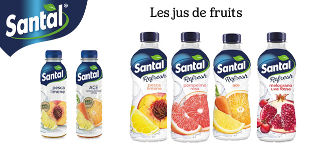 Découvrez la nouvelle gamme de jus de fruits et thés glacés SANTAL, marque de jus n°1 en Italie.
