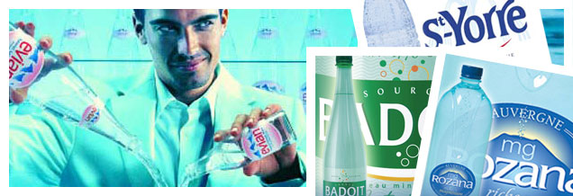 Eaux pétillantes: BADOIT , VICHY-CÉLESTINS, SAINT-YORRE, VERNIÈRE, ROZANA, VALS.