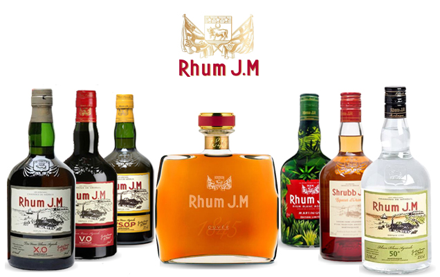 Rhum J.M Blanc 50°, Élevé Sous Bois, rhums Vieux (XO, VO, VSOP), rhums Vieux Millésimés (2000, 2002, 2004), rhum Vieux Fondateur 1845, Jungle Macouba, Shrubb Orange.