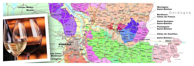 Les vins de Bordeaux déploient leurs richesses dans des appellations réparties de part et d’autre de la Gironde et de ses affluents : Dordogne et Garonne, dans le département de la Gironde, sur quelque 100 .000 ha. On appréciera toute la palette variée des Médoc (Saint-Estèphe, Pauillac, Saint-Julien, Listrac-Médoc, Moulis en Médoc et Margaux…) et des Graves (Pessac Léognan, Sauternes), de l’Entre Deux Mers. Le Libournais (rive droite de la Dordogne) offre ses Saint-Emilion et ses Pomerol. Rive droite de la Gironde prospèrent les Côtes de Borg et Côtes de Blaye.