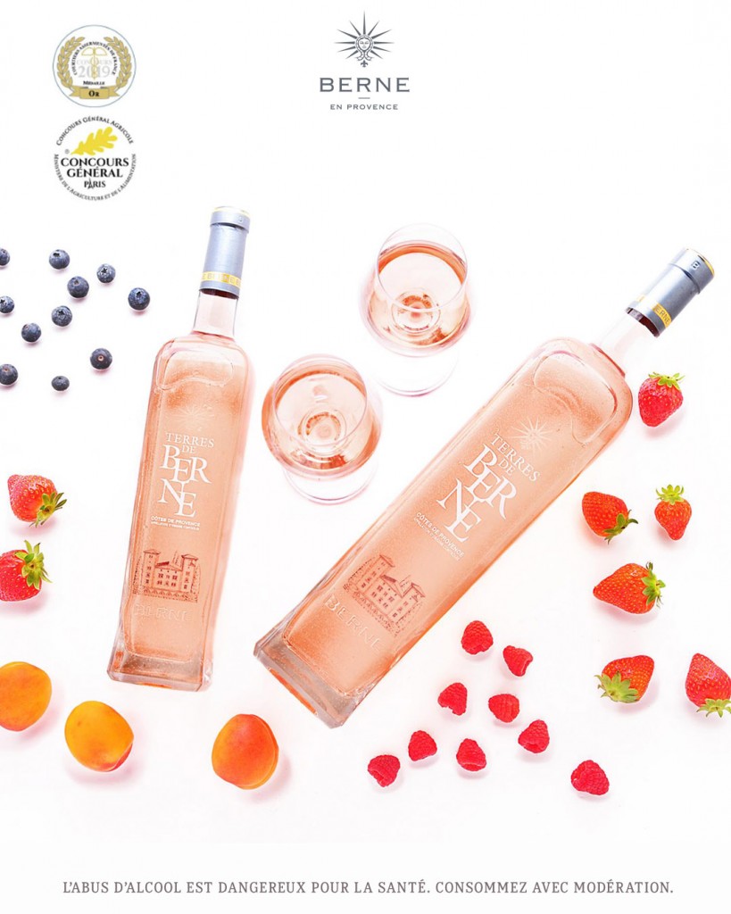 Le TERRES DE BERNE ROSÉ 2018 – AOP Côtes de Provence, élu meilleur rosé de Provence, est la cuvée phare de la gamme: