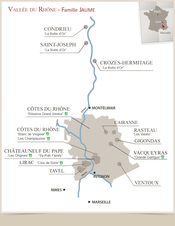 Les vins de cette appellation proviennent de la région bordant le fleuve Rhône, entre Lyon et Avignon.